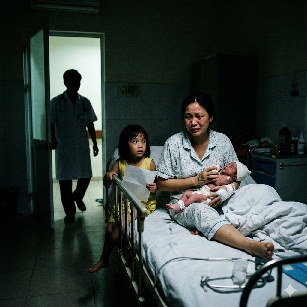 Tôi ôm chặt đứa bé còn đỏ hỏn vào ngực. Con gái tôi đứng chắn trước cửa, nhỏ người nhưng ánh mắt chưa từng cứng rắn đến thế.
